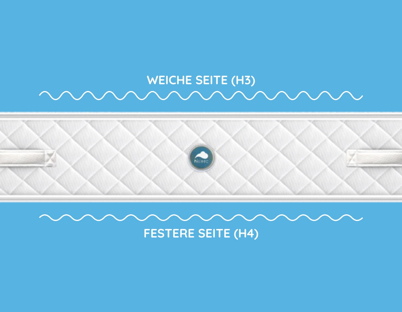 Die Hisleep Traummatratze bietet Ihnen die Möglichkeit, Ihren Schlafkomfort individuell anzupassen. Entscheiden Sie sich für die weiche Seite mit dem Komfort von H3 oder die festere Unterstützung von H4. Beide Härtegrade sind darauf ausgelegt, Ihre Wirbelsäule optimal zu stützen und gleichzeitig für langfristige Formstabilität zu sorgen. Wählen Sie, was am besten zu Ihren Bedürfnissen passt, und genießen Sie erholsame Nächte, die perfekt auf Ihren Schlafstil abgestimmt sind.